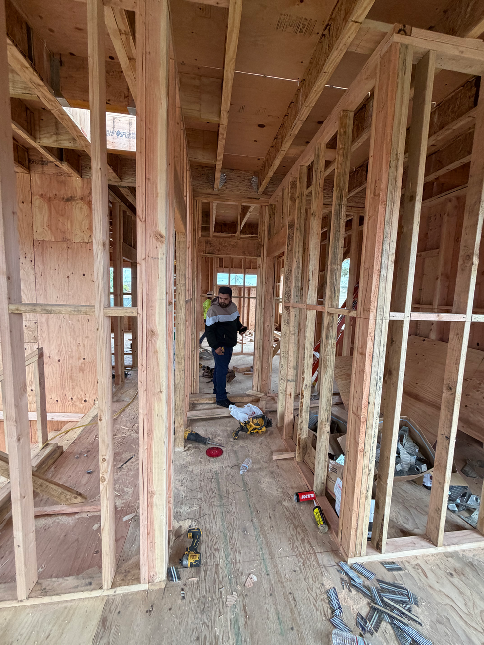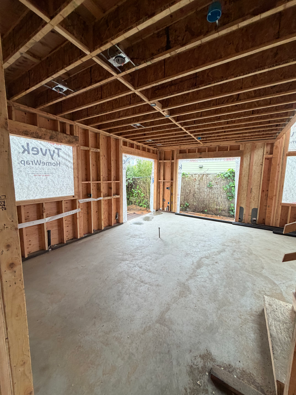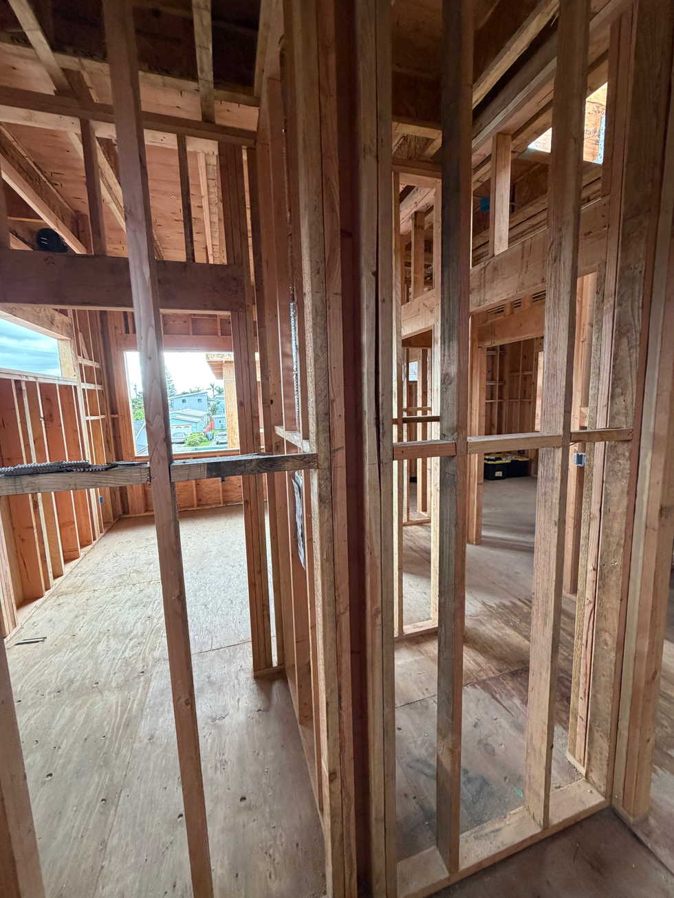 A project currently underway in Berkeley. The structure is presently in the framing stage (exposed studs) and will soon be ready for drywall installation.